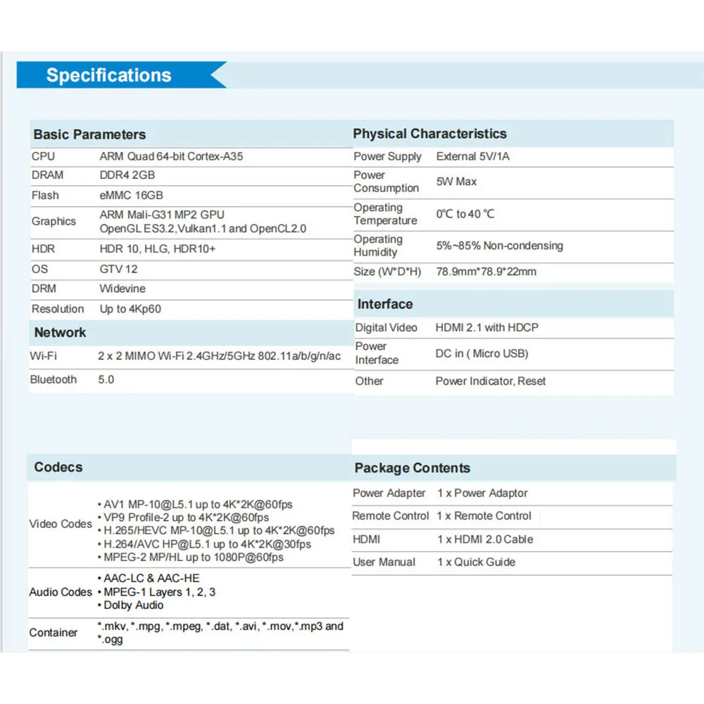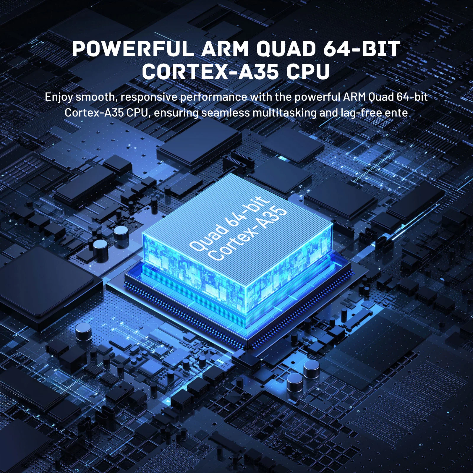 Enjoy smooth, responsive performance with the powerful ARM Quad 64-bit Cortex-A35 CPU, ensuring seamless multitasking and lag-free ente